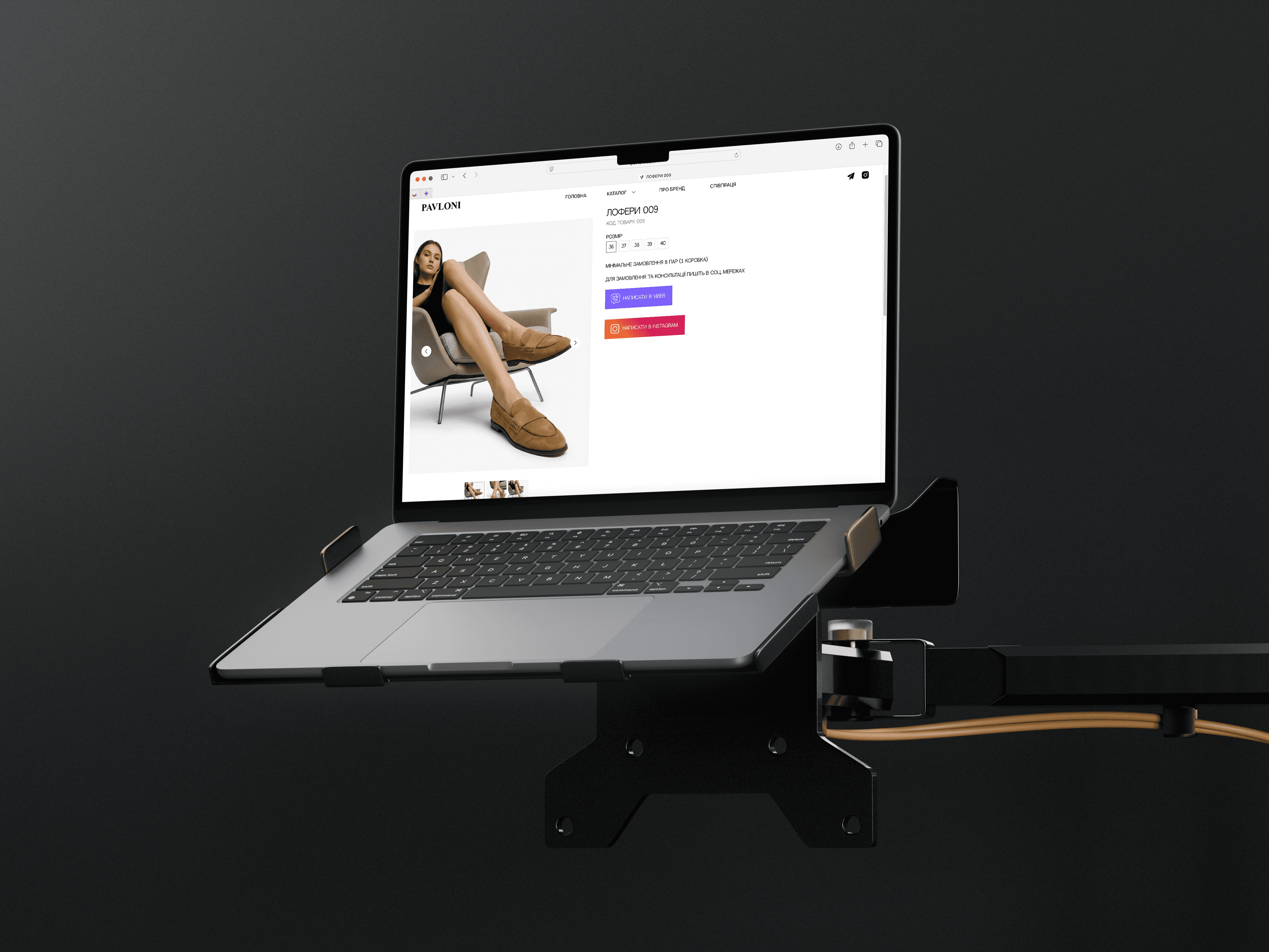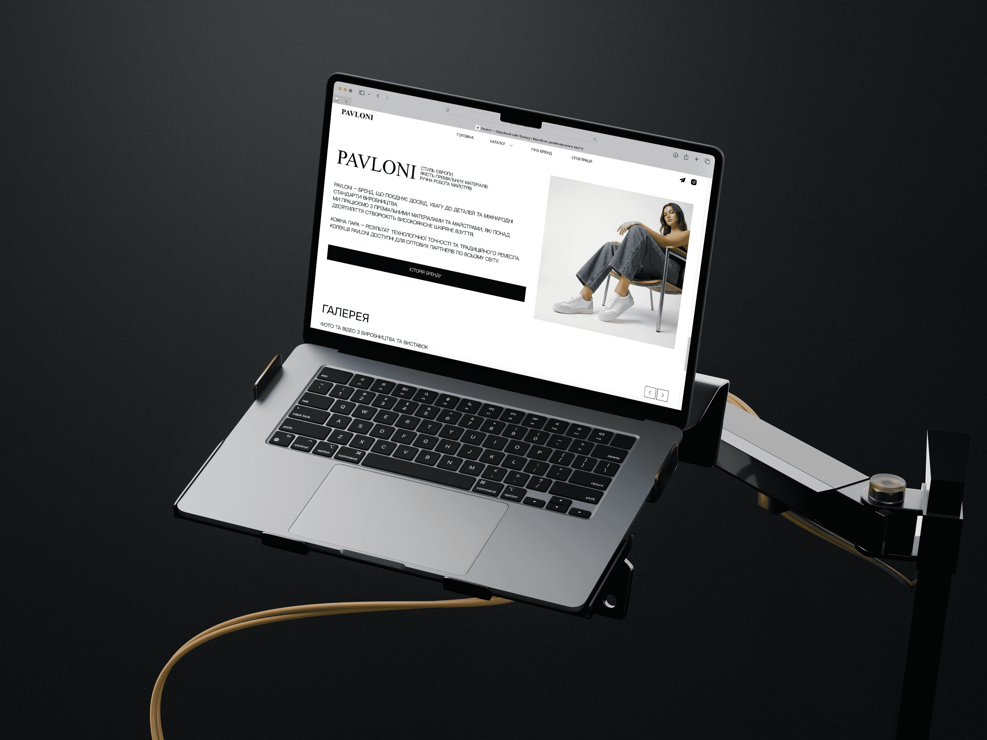 Створено стильний та лаконічний веб-ресурс, що повністю відповідає преміальному позиціонуванню Pavloni. Сайт виконує роль «візитної картки» бренду в інтернеті. Він дозволяє клієнту детально вивчити каталог у зручному інтерфейсі, після чого переводить вже «теплого» користувача у прямий канал комунікації (соцмережі) для завершення угоди.